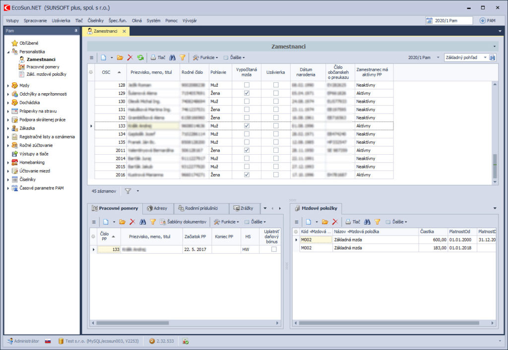 Každý HR pracovník ocení kompletnú personálnu agendu zamestnanca. Obsahuje evidenciu rodinných príslušníkov, zrážok – exekúcií, osvedčení a pracovných zmlúv, tlačivá pre cudzincov (informačné karty o vzniku a zániku pracovno-právneho pomeru cudzinca). Samozrejmosťou je vedenie štatistických záznamov a možnosť vlastnej konfigurácie tlačových zostáv.