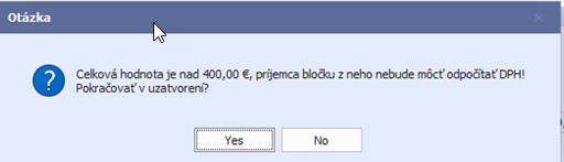EcoSun sa flexibilne prispôsobil novele zákona a používateľom prináša praktické riešenia, ktoré šetria čas a znižujú chybovosť. Po uložení dokladu v module SHOP, program automaticky skontroluje, či doklad neprekročil limit 400 EUR.